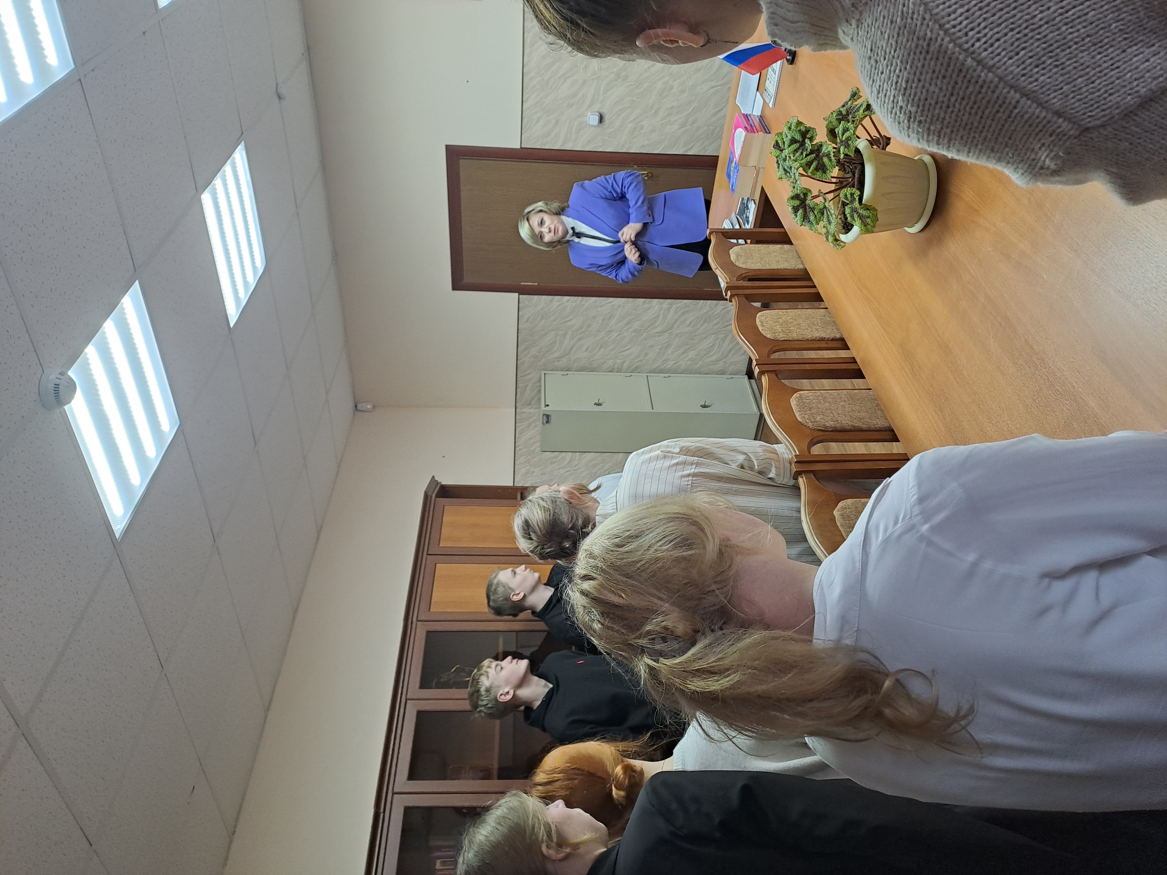Председатель суда Маслова Ольга Валерьевна рассказала ученикам об основах Конституции Российской Федерации, ее создании, структуре и внесенных изменениях, о востребованности профессии «юрист», об учебных заведениях, где ее можно получить, о видах судопроизводства, об институте суда присяжных.