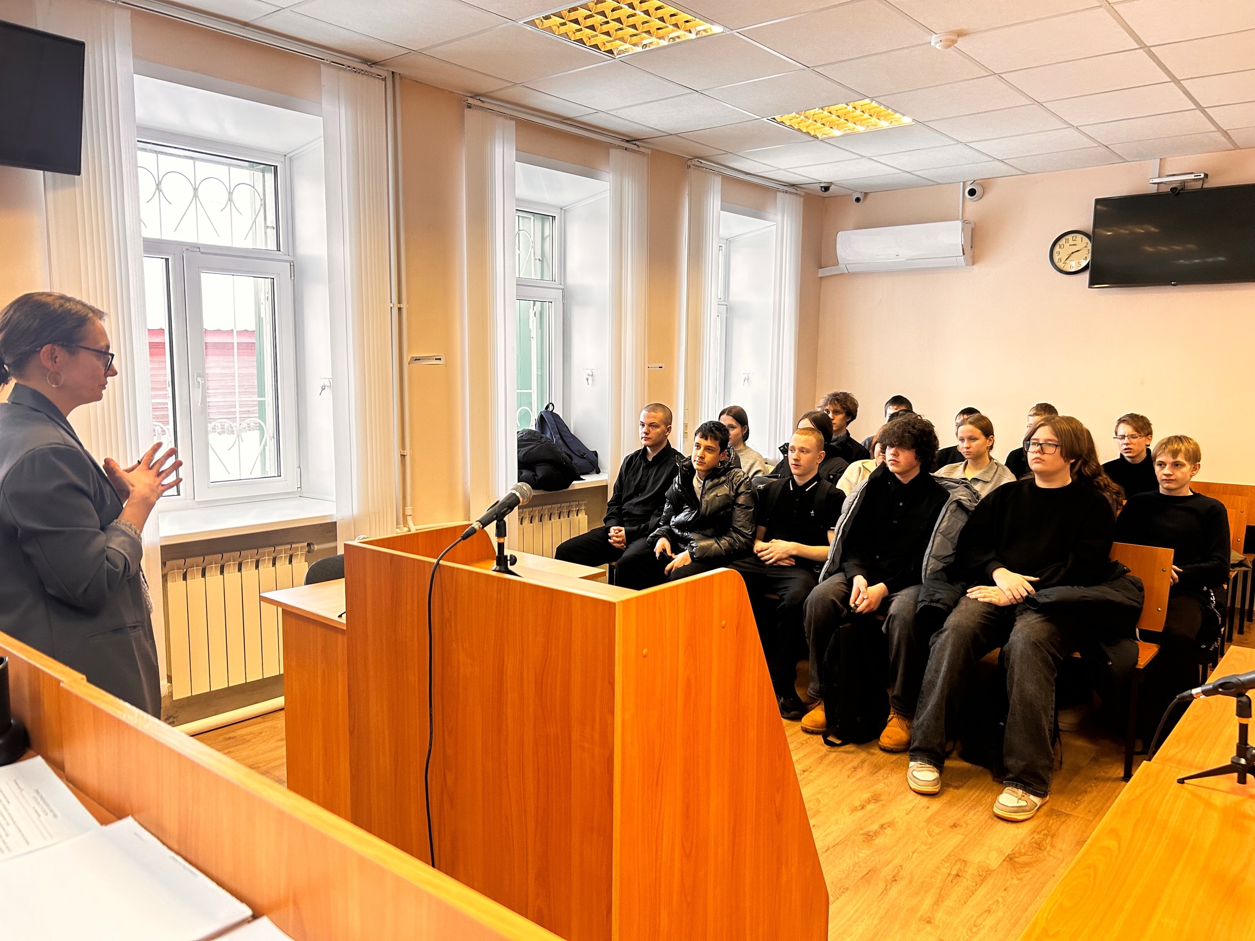В рамках взаимодействия с образовательными учреждения Кадыйского муниципального округа Костромской области, реализации регионального правового проекта правового просвещения «В суд за новыми знаниями» с целью повышения юридической грамотности молодежи, правового воспитания несовершеннолетних, формирования у них уважительного отношения к Закону 22.01.2026 Макарьевский районный суд Костромской области (п. Кадый) посетили учащиеся 9 класса МБОУ Кадыйская средняя школа Костромской области.